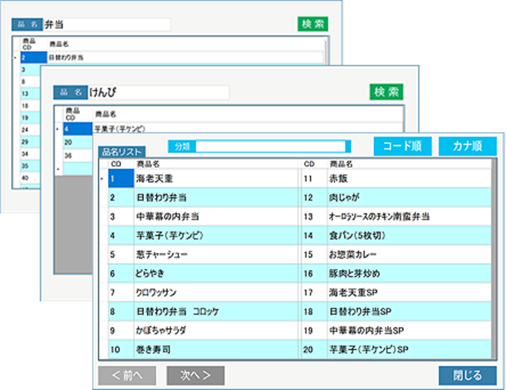 1000 件以上の大量の商品も、 充実した検索機能により、瞬時に呼び出すことができます。